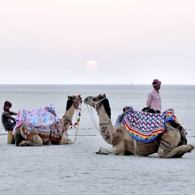 The Gujarat Rann Utsav Tour is a jouney through the festival celebrating vibrant heritage, arts and crafts of Gujarat. Revel in the spectacular sights of the Great Rann of Kutch and witness the mesmerizing white salt desert landscapes. Enjoy the desert settings and culture showcase in Rann Utsav. Apart from this, you also get to visit one of the cleanest beaches in India, the Mandvi beach. Explore the exquisite architecture of the Vijay Palace, which was the summer palace of the Jadeja Maharao of Kutch and the Lord Shree Swami Narayan dome of the Swami Narayan Temple.